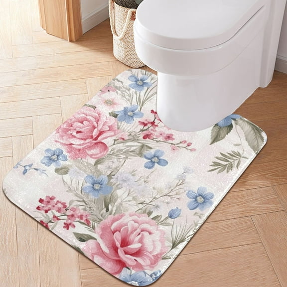 Toilet Rug U-Shaped Bathroom Rugs Non-Slip Soft Plush Machine Washable Contour Bath Mat Beautiful Wildflowers 24x20 From $17.99