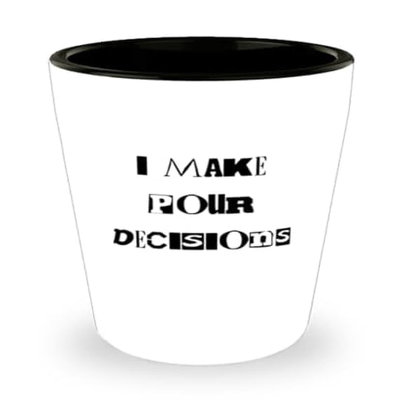 current price $16.95Wine Shot Glass, I Make Pour Decisions, Alcohol Humor Gift, Mini Glassware, 1.5oz Cup