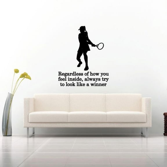 Regardless Of How You Feel Inside, Always Try To Look Like A Winner Quote Player Silhouette Vinyl Wall Sticker Art Decal Sport Boy Girl Kid Room Design Bedroom Tennis Sports Decor Size (10x8 inch) From $15.35
