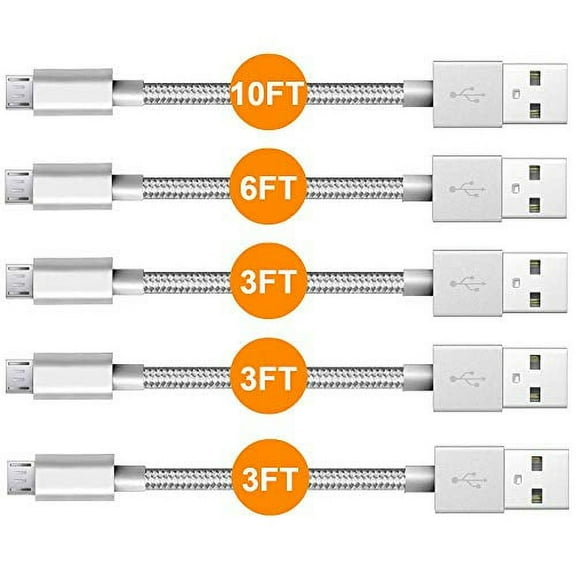 current price $11.25Android Micro USB Charger, 5-Pack Nylon Braided Tangle-Free Fast Charging &Data Transfer Wire (10FT + 6FT + 3X 3FT)