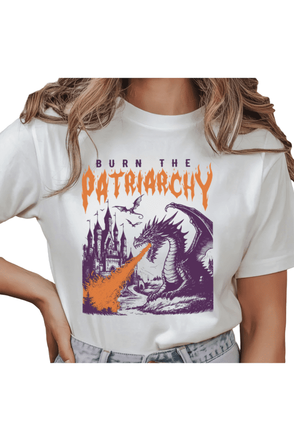 Women's "Burn The Patriarchy" Fantasy Dragon Graphic T Shirt Feminist Gothic Castle Print Short Sleeve Round Neck Top White S-5XLFelt Cute Witch Halloween Costume Funny Wiccan Women T-Shirt From $10.98