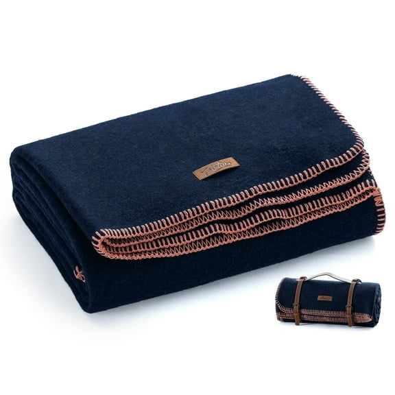 Woolly Mammoth Woolen Company, Rustic, Navy Blue, Merino Wool, Throw Blanket, Adult, 4 lbs 66" x 90"