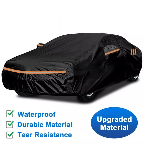 current price $107.99Unique Bargains Car Cover Waterproof All Weather Automotive Outdoor Anti-UV Sun Rain Protection Full Exterior Cover for Toyota Prius Aluminum Film Cotton Orange with Reflective Strips