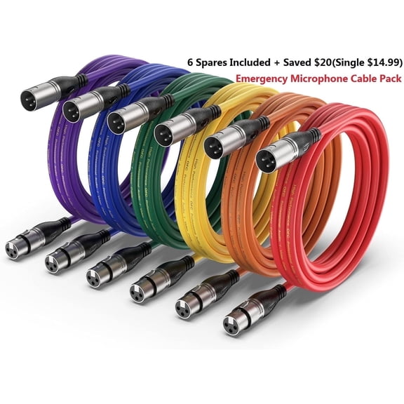 XLR Cables,2Pack Microphone Cable, XLR Male to Female Balanced Microphone Cord 3 pin, 3 Ft Short mic Cord Oxygen-Free Copper Nylon Braided $11.99current price $11.99GearIT XLR to XLR Microphone Cable (6 Feet, 6 Pack) XLR Male to Female Mic Cable 3-Pin Balanced Shielded XLR Cable for Mic Mixer, Recording Studio, Podcast - Multi Colored, 6Ft, 6 Pack