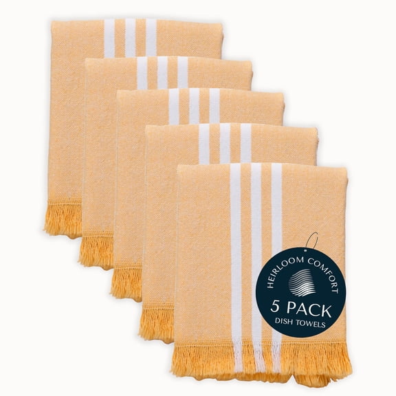 HEIRLOOM COMFORT 5 Pack Monochrome Stripe Dish Towels with Fringes, 16x26 Inch, 100% Cotton, Ultra Absorbent & Reusable, Quick Drying Kitchen Towels for Cleaning, Cooking, Drying, Mustard Yellow From $15.99