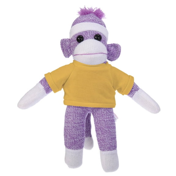 Made by Aliens 10 Inch Purple Sock Monkey with Tee Plush Stuffed Animal Personalized Gift - Custom Text on Shirt - Great Present for Mothers Day, Valentine Day, Graduation Day, Birthday (Yellow) From $15.99
