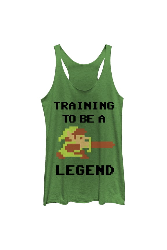 Women's Nintendo Legend of Zelda Link Training Racerback Tank Top Envy Green X LargeJunior's Nintendo Legend of Zelda Link Training Festival Muscle Graphic Tee Pine Green Heather Small