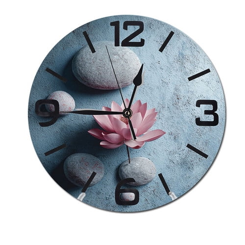ZXCXRQFa Water Flower Zen Stone Natural Round Wall Clock Daisy Silent Non Ticking PVC Wall Clocks Battery Operated for Home Office School Decor,10 Inch