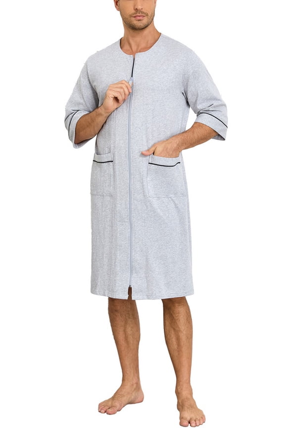 Men's Cotton Robe Short Sleeve Lightweight Summer Bathrobes for Men Zip up House Coat with Pockets(Blue, X-Large)Women's Zipper Front Jacquard Fleece Long Robe Duster From $35.99