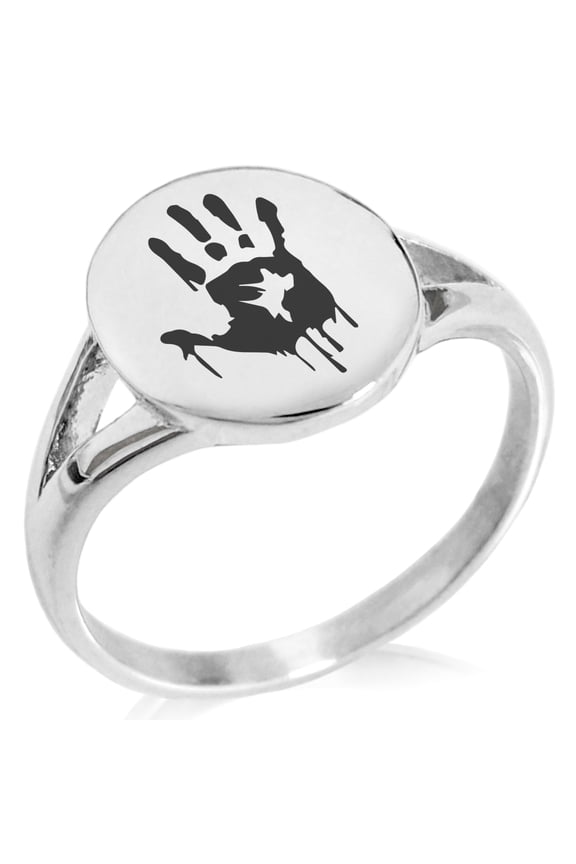 Stainless Steel Biohazard Skull Zombie Minimalist Oval Top Polished Statement Signet Ring From $15.00