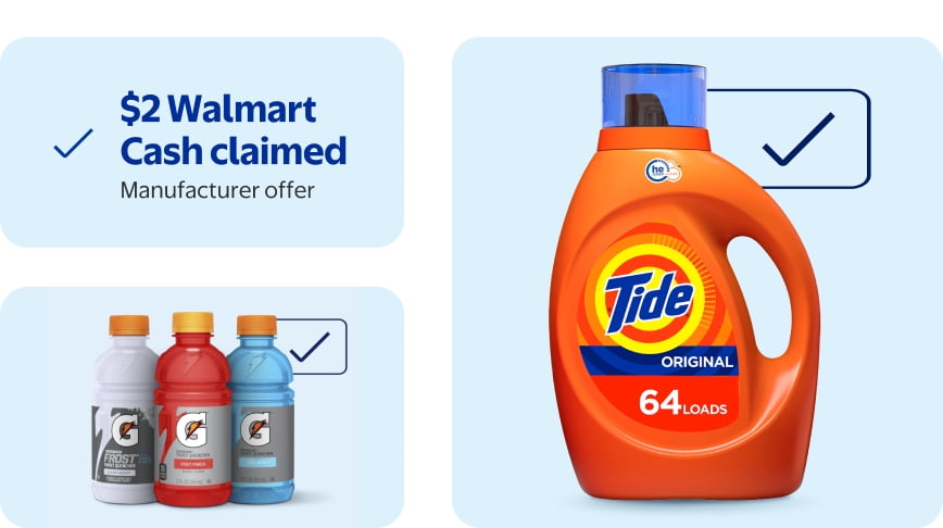 You can find manufacturer offers from the Walmart Cash page, search bar or product page. Find & select the “Get Walmart Cash” box associated with individual products on Walmart.com or in the Walmart app. In store, you can also find & claim manufacturer offers using the barcode scanner in "Store mode" in the Walmart app.