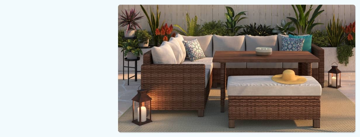 If your outdoor space is your second family room, make it more welcoming and comfortable with beautiful, durable and functional patio furniture in all styles, sizes, colors and materials. Whatever size your patio, porch, deck or yard, there's furniture and accessories for your needs. Best of all, you'll find affordable patio furniture, as well as all kinds of other outdoor furniture at the best value.