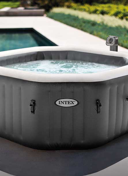 When purchasing an above-ground pool or hot tub, keep in mind how you'll be using it. If you're looking for something for your little one to splash around in, inflatable and kiddie pools are a great option that can quickly and easily be set up in your yard. Inflatable hot tubs and saunas are perfect for relaxing and unwinding when it gets chilly, while metal-frame above-ground pools are great for keeping cool during the summer.