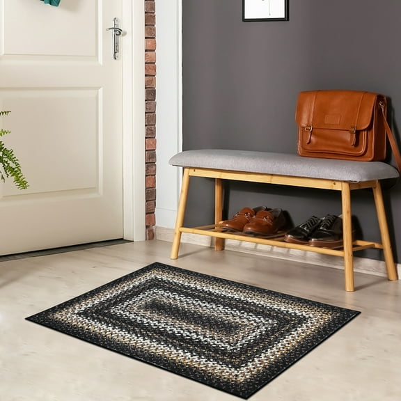 Haperlare Braided Print Boho Rug Living Room Area Rug Modern Geometric Area Rug Washable Rug Farmhouse Floor Carpet, 2' x 3' Black $18.79