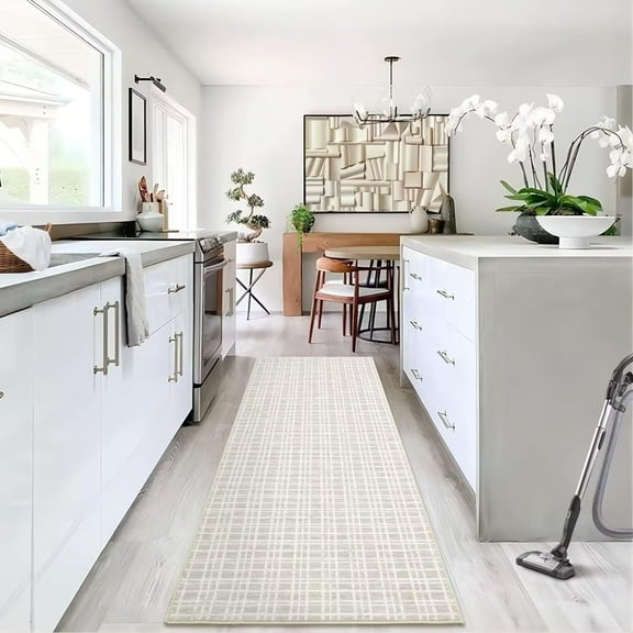 Haperlare Modern Checkered Area Rug Indoor Plaid Print Floor Cover Soft Faux Wool Throw Carpet Aesthetic Rug Foldable Thin Rug, 2' x 6' Gray $25.92 Was $33.92