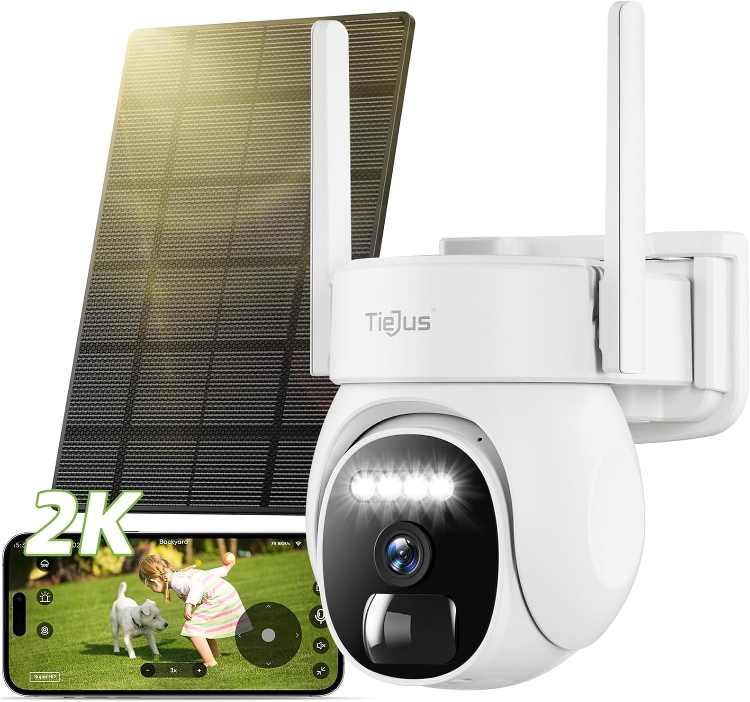 TIEJUS Wireless Outdoor 2K Security Camera,Waterproof,Solar Powered,2.4GHz Wifi,Color Night Vision,Two-Way Audio$39.99current price $39.99TIEJUS 2K Wireless Outdoor Security Camera ,Waterproof,,2.4GHz WiFi,Rechargeable Battery Powered Home Surveillance Camera with Color Night Vision