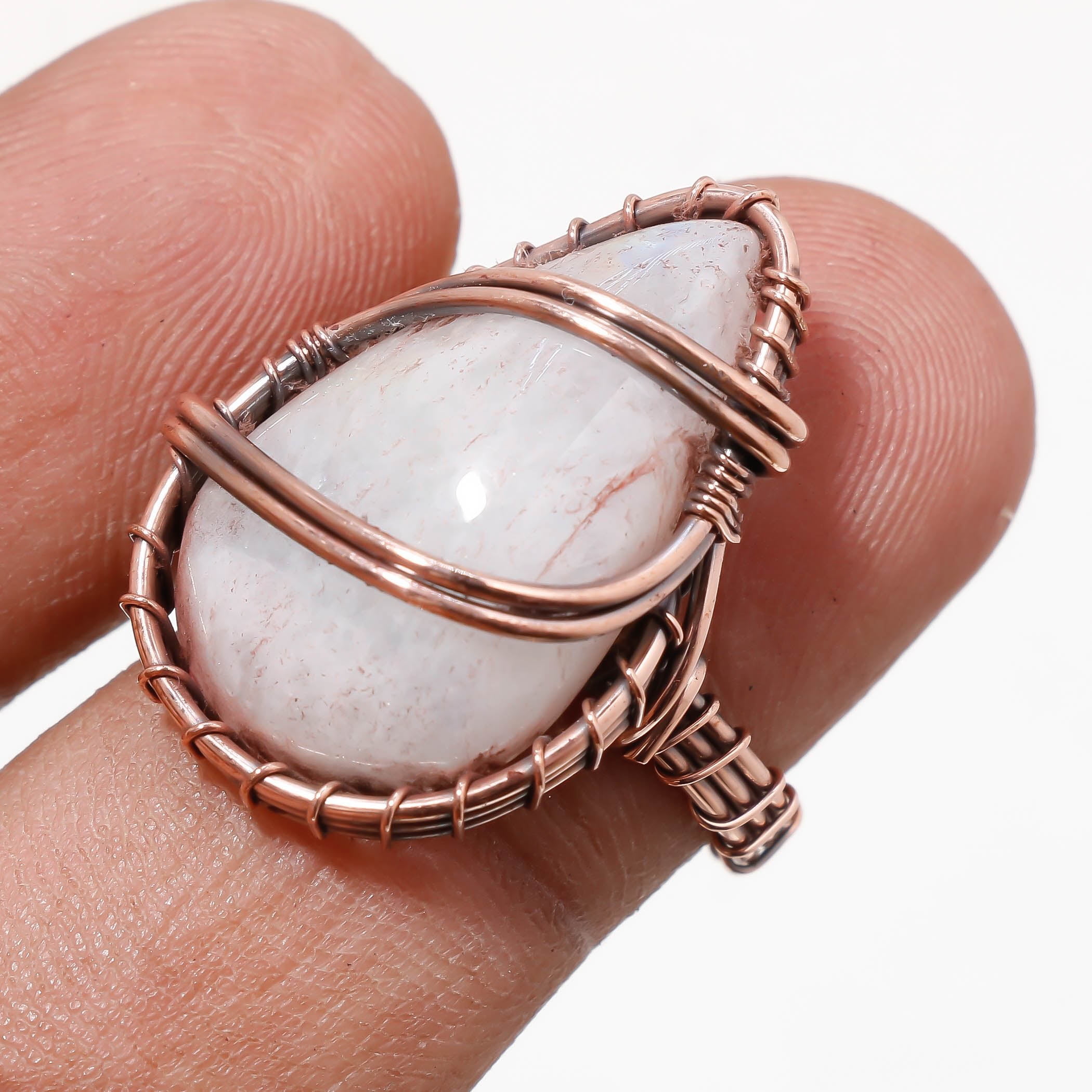 Rainbow Moonstone Wire Wrapped Handcrafted Copper Gift Jewelry Ring 6.50" SA 474