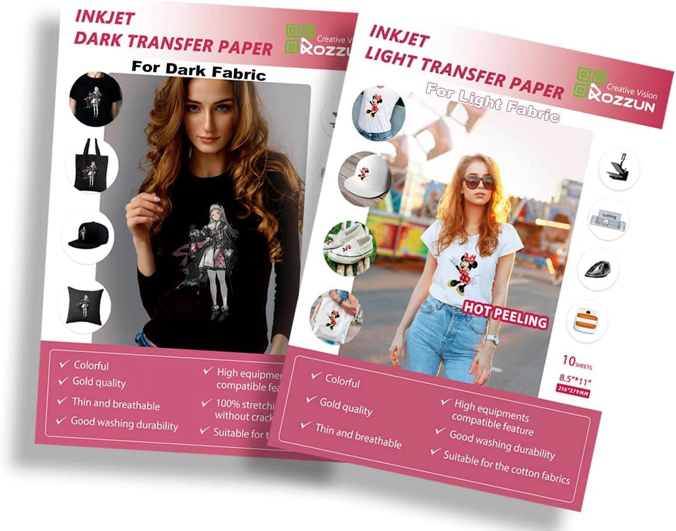 Activities Printable Iron-On Heat Transfer Paper for Dark & Light Fabrics, 8.5x11” US Letter Size to Print for T Shirts and DIY Projects, 20 Sheets (Dark & Light Transfer Paper for Inkjet Printers)