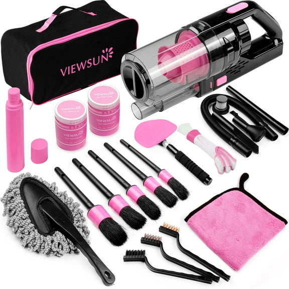 Available in additional 10 sizesViewsun 17pcs Car Cleaning Kit, Pink Car Interior Detailing Kit with High Power Handheld Vacuum, Detailing Brush Set, Windshield Cleaner, Cleaning Gel, Complete Auto Accessories for Women Gift