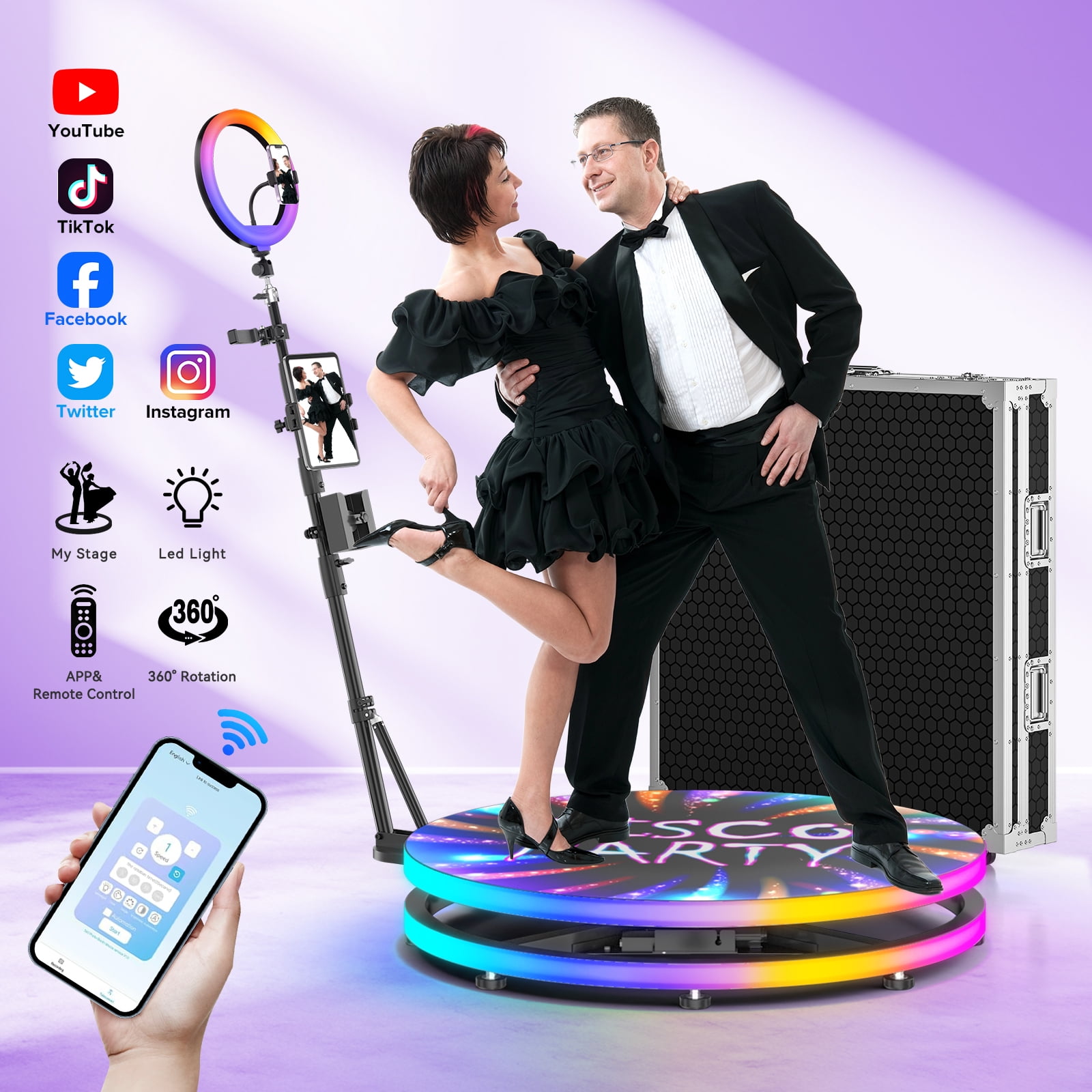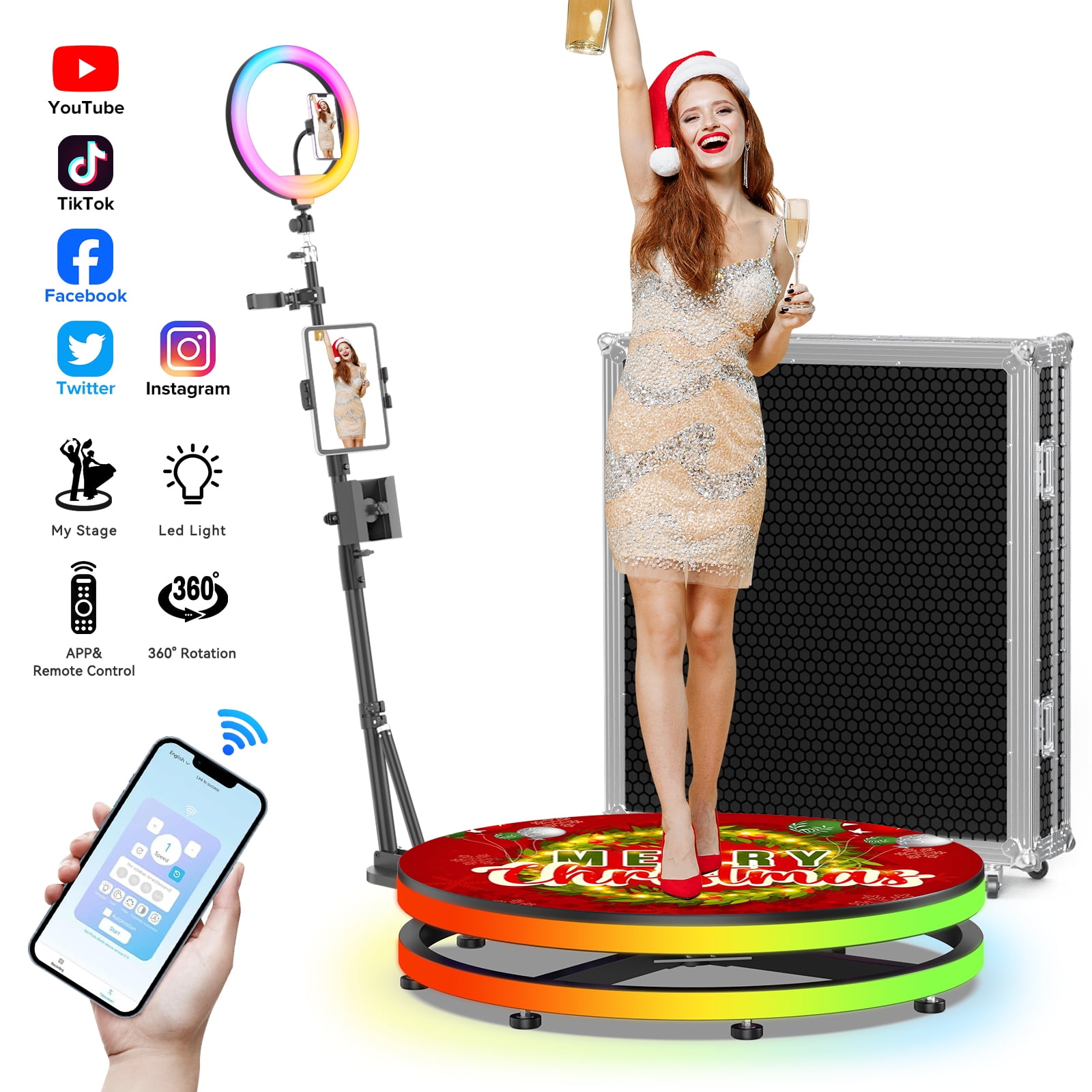 1.Free Custom Sticker Design: Get TWO personalized sticker design at no extra cost when purchasing a 360 Photo Booth from FOOTIELD. You can send images or describe your preferences.
