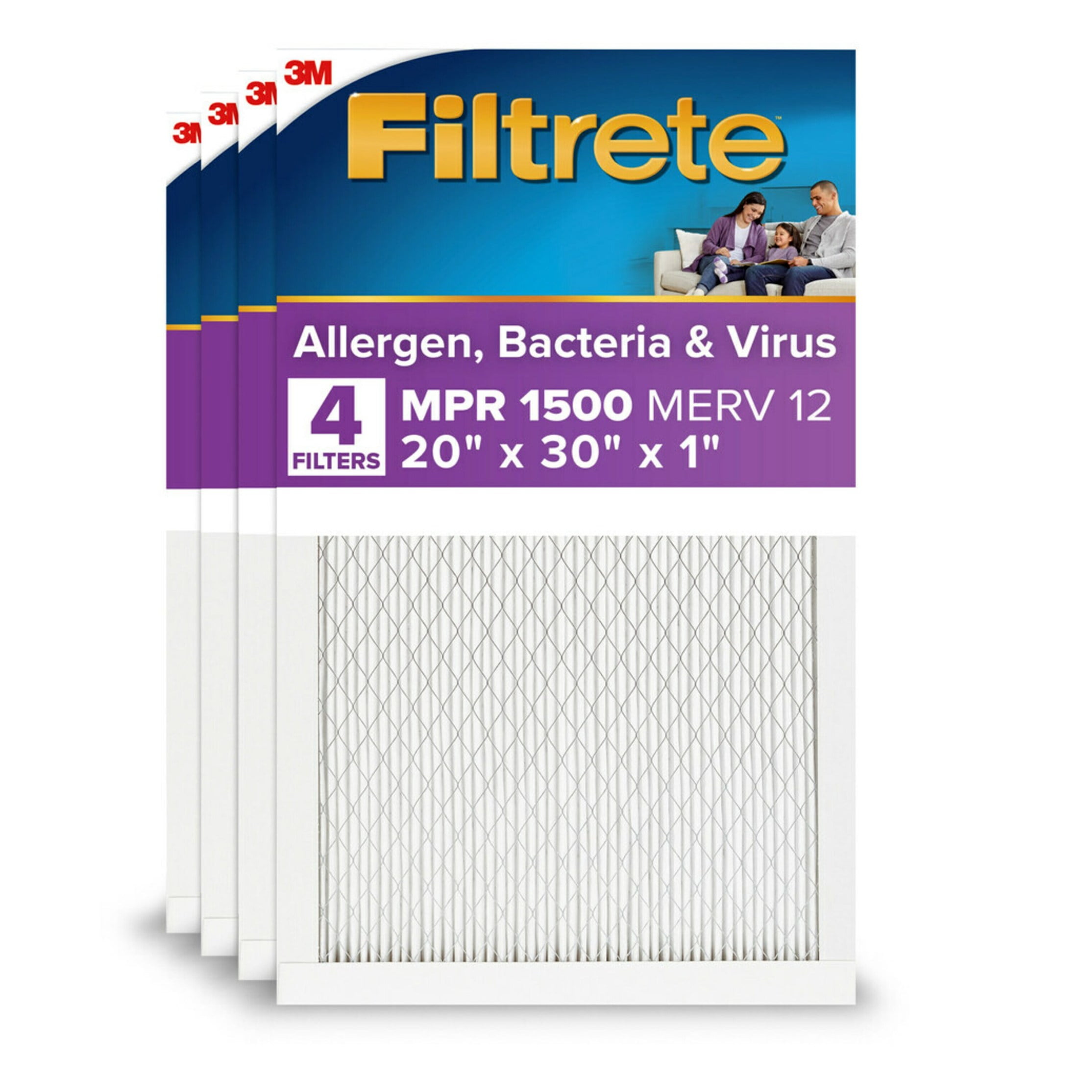 Filtrete 20x30x1 Air Filter, MPR 1500 MERV 12, Advanced Allergen Reduction, 4 Filters