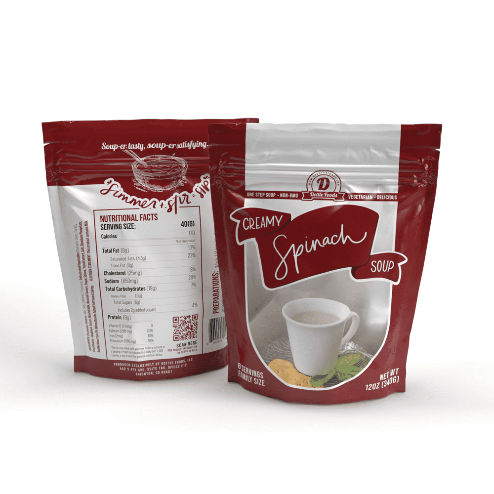 Dottie Foods Cream of Spinach Family Size - 12oz Family Size Pouch-Yields 8-8oz servings