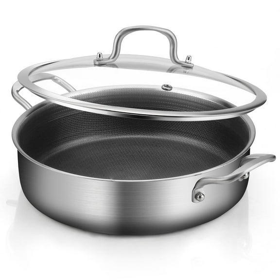 YEKSUM Tri-Ply Stainless Steel Saute Pan, 6QT Deep Frying Pan,Dishwasher Safe and No CoatingNon-Stick Cookware,Stove to Oven Cookware,Kitchen Essentials $33.99