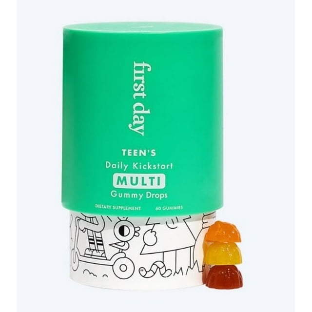 FIRST DAY Teens Daily Kickstart Multivitamin Gummies for Ages 14+ – Vitamins A, B1, B2, B6, E, B12, C, D3 & K2 + Zinc & Folate – Made w/Organic Fruits & Veggies, Only 2g Sugar