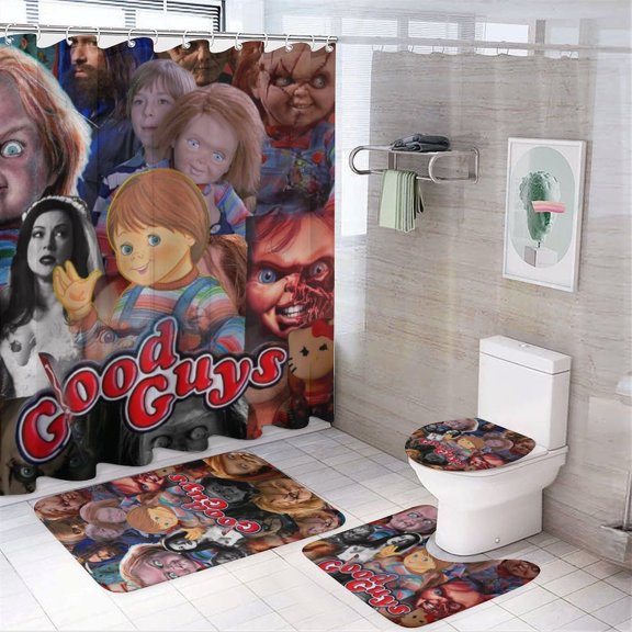 4 Pcs Shower Curtain Set with Rugs Chucky Shower Curtain Bathroom Sets Decor Waterproof $49.99 Was $58.99