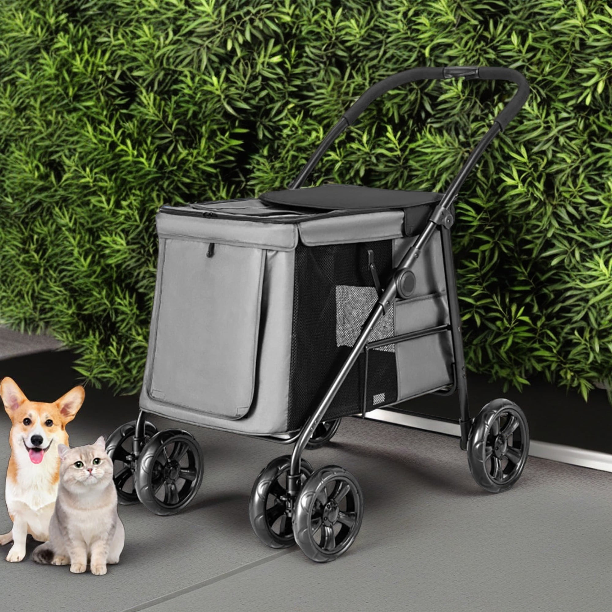 Easy assembly and my two pets fit comfortably. The detachable carriers are used for additional beds when the stroller is not in use. This was a smart double pet stroller purchase. It lives up to the description. 5 Stars!