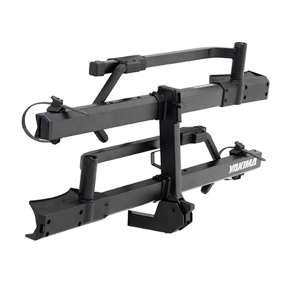 The Yakima StepUp 2-Bike Wheel-Mount Platform Rack is a streamlined platform hitch rack for 2-inch receivers, designed for high-capacity transport without excessive bulk. It carries two bikes up to 65 pounds each on paved roads, making it a primary choice for e-bikes, mountain, and fat-tire models. This 130-pound total capacity ensures stability during daily commutes or extended travel, while the compact profile maintains a clean aesthetic behind the vehicle. Loading is focused on frame protection. The StrongArm hook anchors the front tire to ensure zero contact with paint or carbon fiber finishes. To prevent mechanical interference, StadiumSeating architecture tiers the trays for improved ground clearance and handlebar spacing. Optional offset positions allow for further fine-tuning of the bike-to-bike fit, while the flip-away rear wheel strap facilitates faster unloading. For vehicle access, a remote 3-position tilt lowers the rack to clear the trunk even when fully loaded and folds flat when not in use. Installation utilizes an Allen-driven SpeedWedge system for a rattle-free connection. The rack supports 16-inch to 29-inch wheels, tires up to 4.5 inches wide, and wheelbases from 32 to 52 inches. Security is integrated via SKS locks, a HitchLock, and a locking cable, with a built-in bottle opener included for utility.