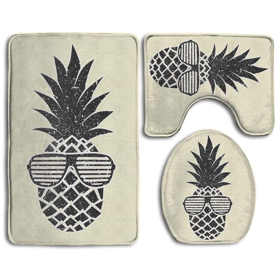 Hero image 0 of PUDMAD Black Sunglasses Pineapple 3 Piece Bathroom Rugs Set Bath Rug Contour Mat and Toilet Lid Cover, 0 of 2