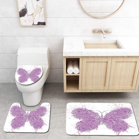 Hero image 0 of PUDMAD Abstract Butterfly on Grunge Splash 3 Piece Bathroom Rugs Set Bath Rug Contour Mat and Toilet Lid Cover, 0 of 2