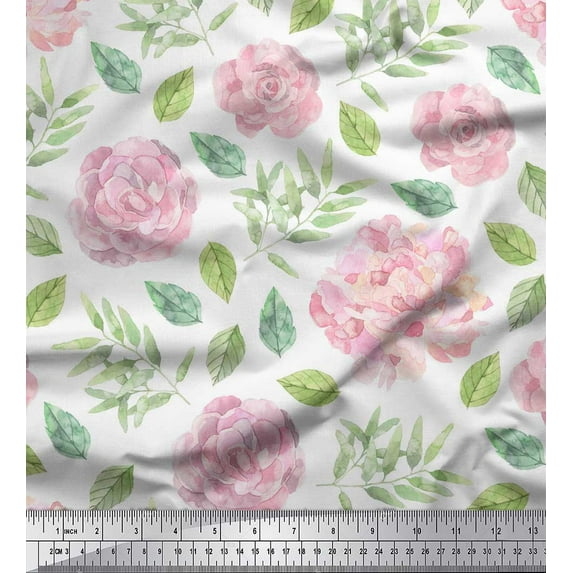 Hero image 0 of Soimoi White polyester Crepe Fabric Leaves & Flower Floral Printed Craft Fabric by the Yard 42 Inch Wide, 0 of 3