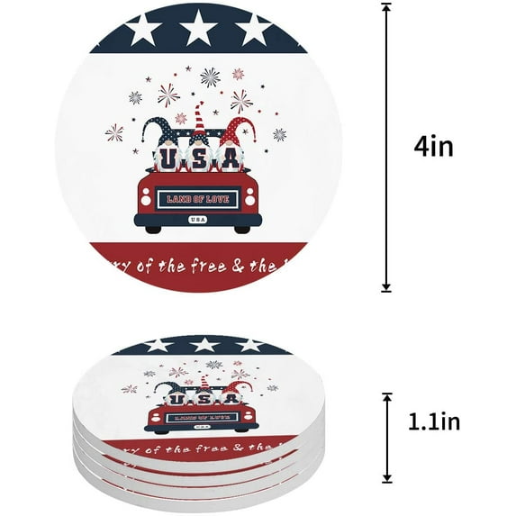 Hero image 0 of FMSHPON Independence Day Gnomes Country of the Free and Brave Set of 6 Round Coaster for Drinks, Absorbent Ceramic Stone Coasters Cup Mat with Cork Base for Home Kitchen Room Coffee Table Bar Decor, 0 of 6