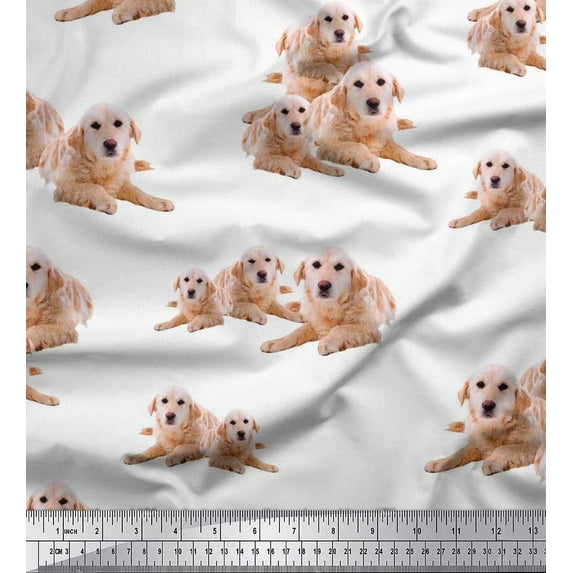 Hero image 0 of Soimoi Crepe Silk Fabric Golden Retriever Dog Printed Fabric 1 Yard 42 Inch Wide, 0 of 3