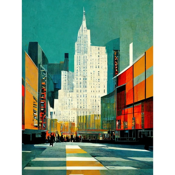 Broadway New York Abstract Midcentury Cityscape Orange Teal Large Wall Art Poster Print Thick Paper 18X24 Inch