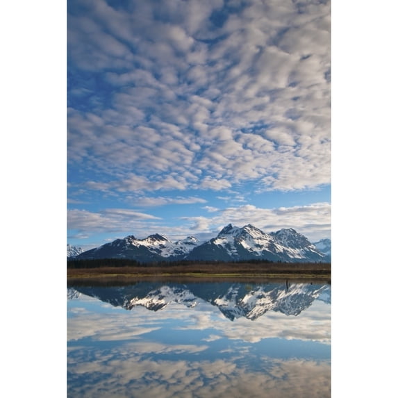 Alaganik Slough Reflecting The Chugach Mountains And Cirrocumulus Clouds In The Morning Chugach National Forest Cordov 1Alaganik Slough Reflecting The Chugach Mountains And Cirrocumulus Clouds In Morning National Forest Cordova Southcentral Alaska Spring Poster Print 1