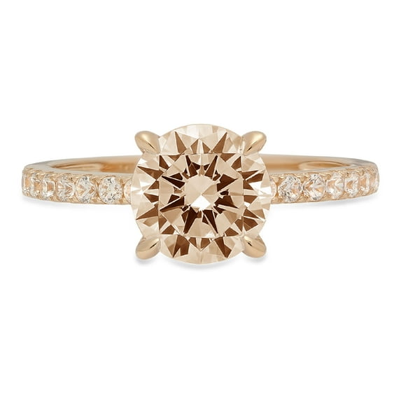 1.71 ct Round Cut Simulated Champagne Diamond Solitaire with Simulated Diamond Accents 18K Yellow Gold Womens Engagement Ring
