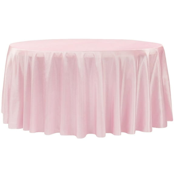 1 Pc, Taffeta Tablecloth 120" Round - Pink(Machine Washable) For Weddings, Birthday Celebrations, Quinceaneras Or Special Occasion