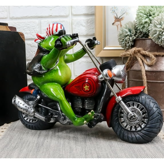 10"L Born To Ride Patriotic USA Biker Frog Riding Red Chopper Motorcycle Statue