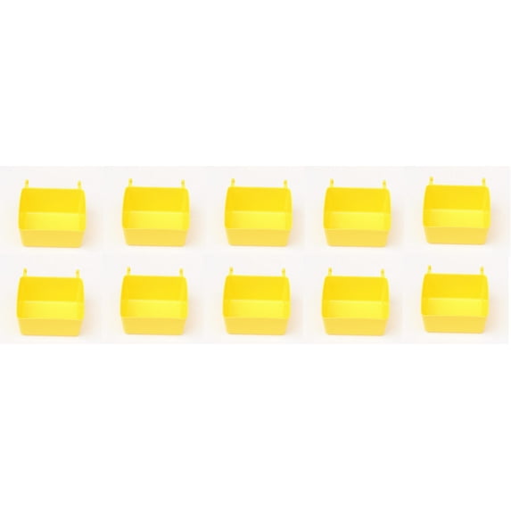 10 Pack Small Plastic Pegboard Storage/Parts Bins - Yellow