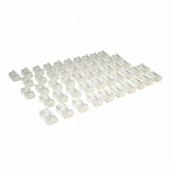 | Count per pack | 50Tripp Lite N031-050 Cat5e RJ45 Modular In-Line Connectors for Stranded Cat5e Cable, 50-Pack, TAA | 10EZ-RJ45 Cat6 Feed Through Connector - 8P8C for Solid & Stranded Cable 10 Pcs Pack | -RJ-45 CAT6 CAT5e Adapter Ethernet Cable Connector Plugs RJ45 Caps for 5 CAT6 Protective Sleeve Multicolo | 210 Pack RJ11 Cat 3 Telephone Jack, Cat3 Coupler Phone No Punch Down Tool-Free Module Connector Adapter, White, 17mm | 100Ryhampaper 100 Pack RJ45 Pass Through Connectors Modular Plug Network Cable Connector Ends Gold Plated 8P8C Ethernet CAT6 CAT5 | 1RCA Keystone CAT6/5E RJ45 White Modular Jack TPHKJRJ45EV |