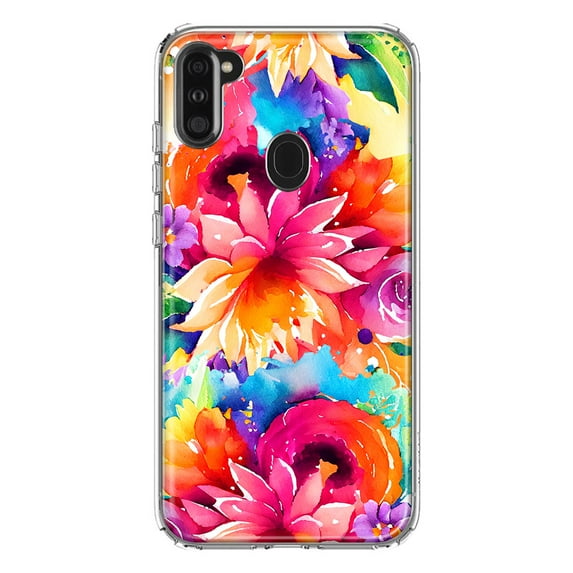 Hero image 0 of MUNDAZE Samsung Galaxy A11 Shockproof Clear Hybrid Protective Phone Case Watercolor Paint Summer Rainbow Flowers Cover, 0 of 5