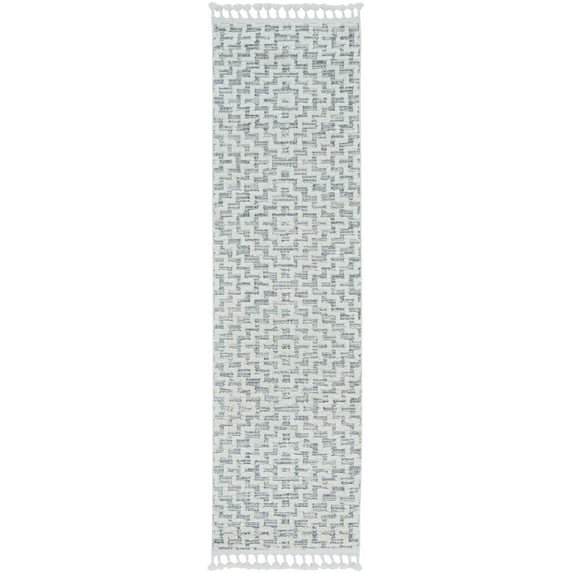8' Ivory Grey Machine Woven Abstract Lines With Fringe Indoor Runner Rug $109.45