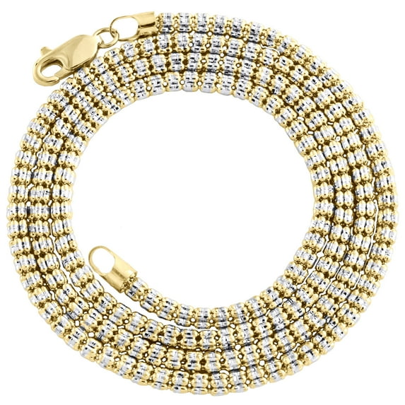 10K Yellow Gold Two Tone 3mm Diamond Cut Ice Chain Bead Necklace 30 Inches