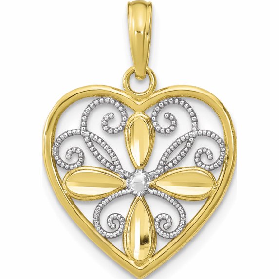 10K Yellow With Rhodium Beaded Filigree Fashion Heart Charm Made In United States 10k9486
