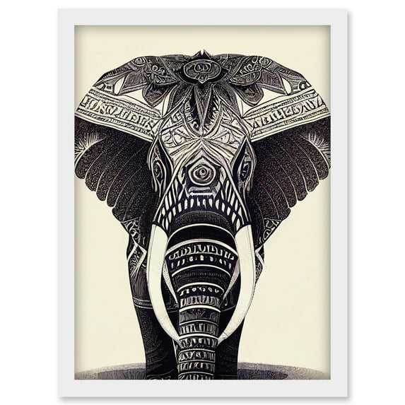Hero image 0 of Illustration Of Elephant With Tribal Patterns Black And White Artwork Framed Wall Art Print A4, 0 of 4