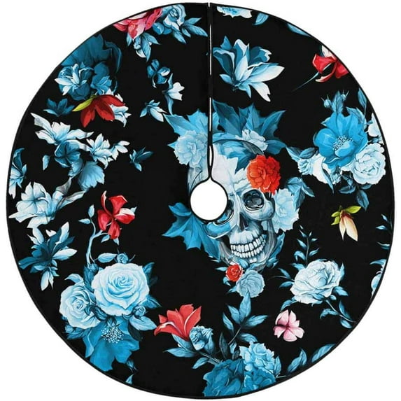 FMSHPON Vintage Skull Flowers Roses Xmas Christmas Tree Skirt Stand Mat for Holiday Party Decoration Indoor Outdoor 36 inches