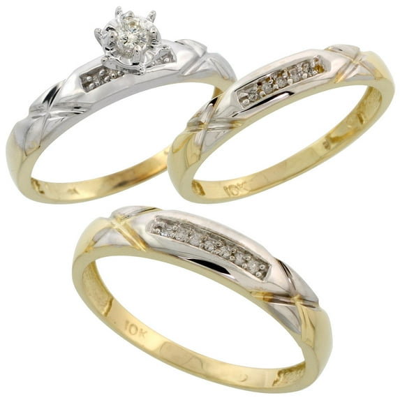 10k Yellow Gold Diamond Trio Wedding Ring Set His 4mm & Hers 3.5mm Ladies Size 6